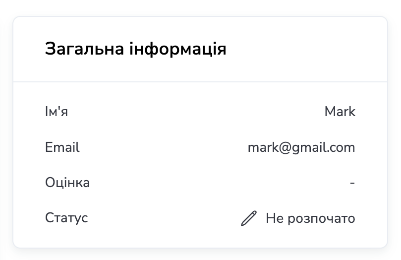 - Інформація про домашнє завдання - в цій частині можна побачити дані про це завдання, його статус, оцінка.